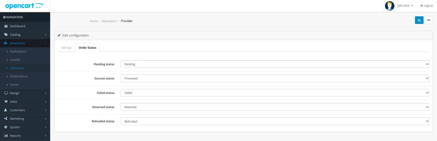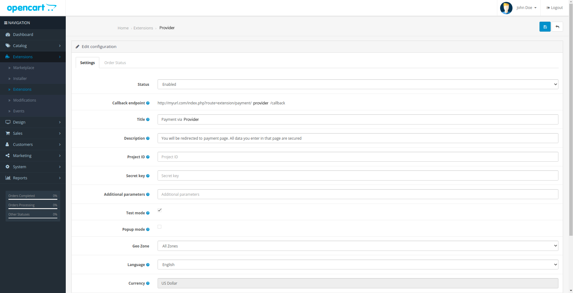 Once the parameters of the plug-in are configured you should perform test orders on the site and check information regarding the orders in OpenCart in the section .