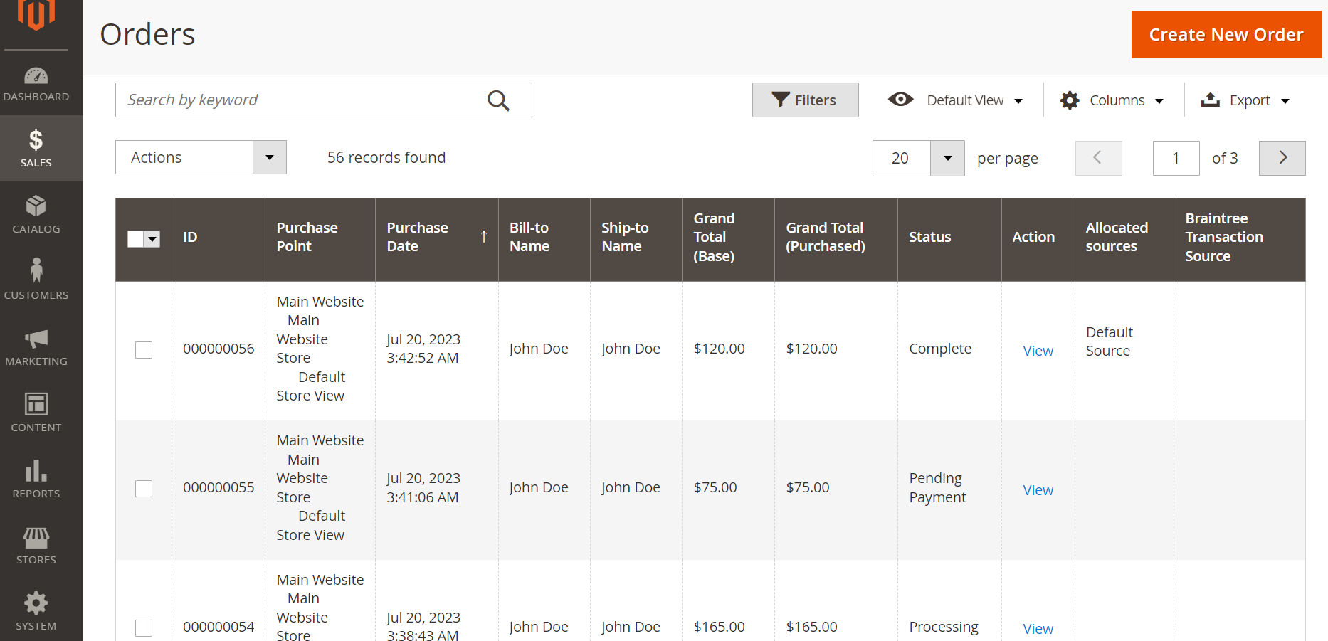 В рамках работы с плагином можно проводить тестовые оплаты в веб-сервисе и получать базовые сведения о них через интерфейс Magento — в подразделе Orders раздела Sales. При этом можно использовать специальные платёжные реквизиты, позволяющие тестировать заданные сценарии работы.