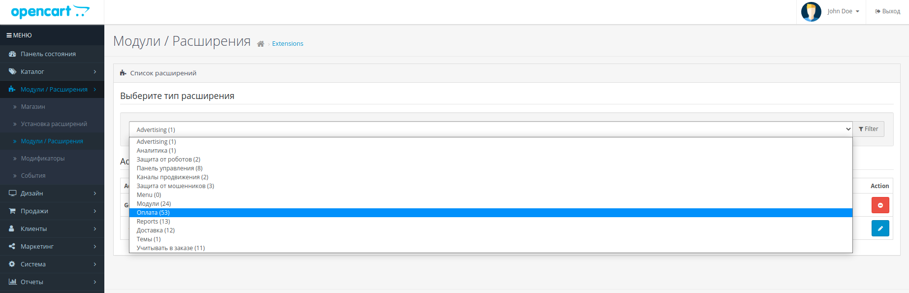 - Перейти на вкладку и выбрать тип расширения — Оплата.