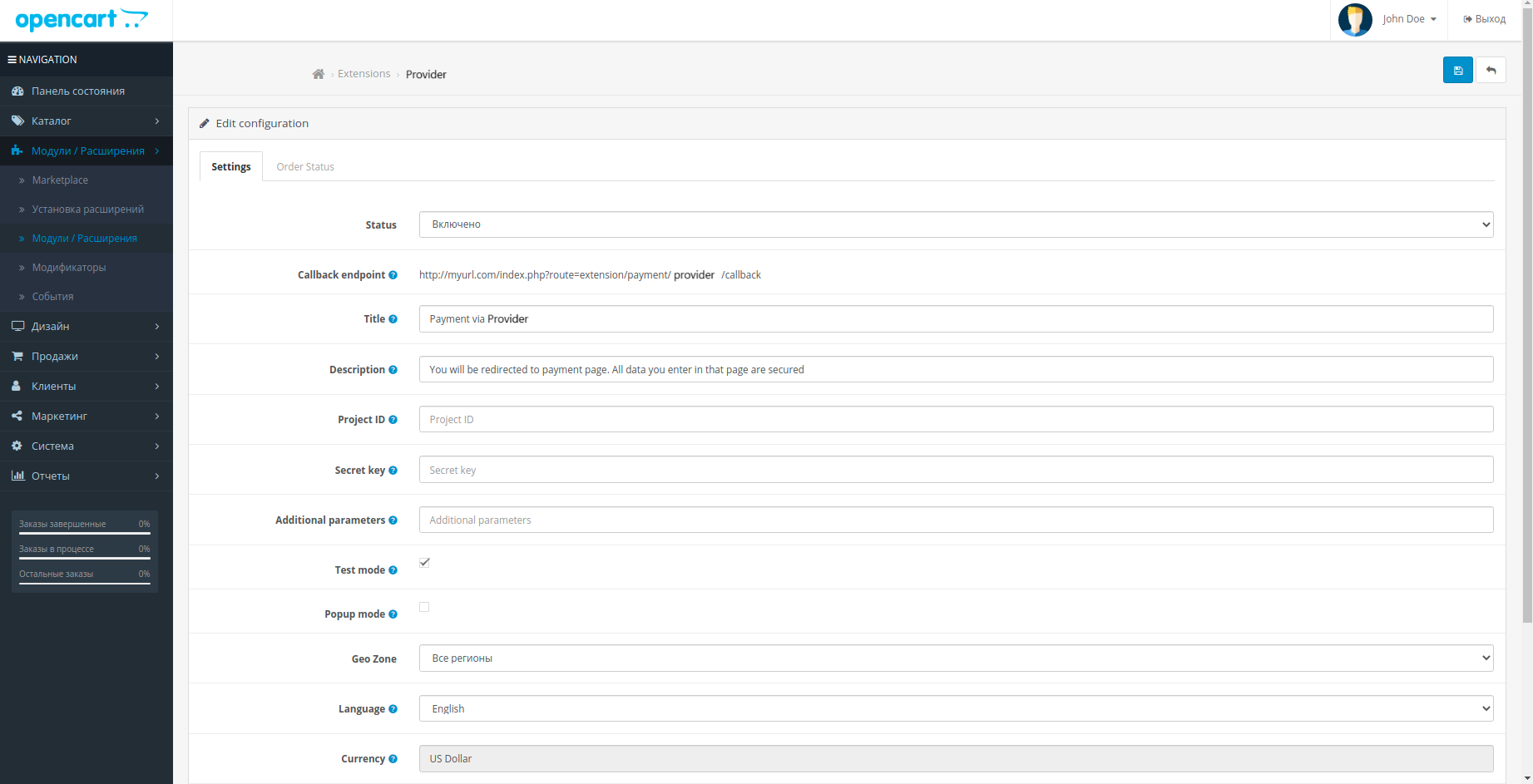 Использование плагина Flashpay payment module для CMS OpenCart 3.0