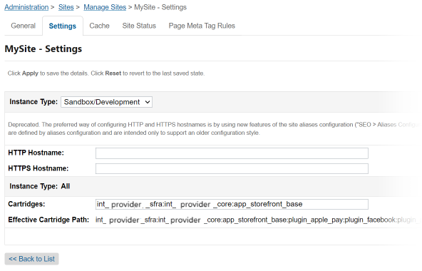 - Перейти на вкладку Administration интерфейса Business Manager и далее в подраздел Manage Sites раздела Sites.
