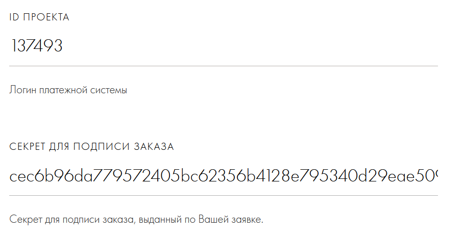 - В полях ID проекта и Секретный ключ для подписи запроса введите полученные от Flashpay идентификатор проекта и секретный ключ, соответственно.